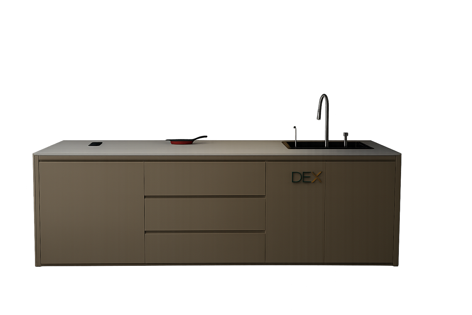DexCook Core Ada Tezgâh, mutfağınızı yalnızca bir yemek hazırlama alanı değil, aynı zamanda yaşam alanınızın merkezine dönüştürüyor. Merkezî konumuyla alanı dört yandan erişilebilir hale getirerek çalışma alanını önemli ölçüde artırır, bu sayede hazırlık işlemleri daha düzenli ve rahat ilerler